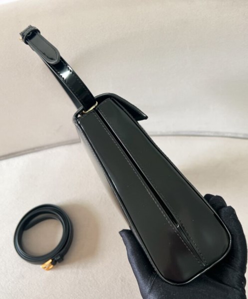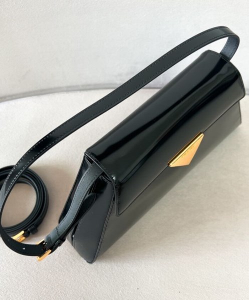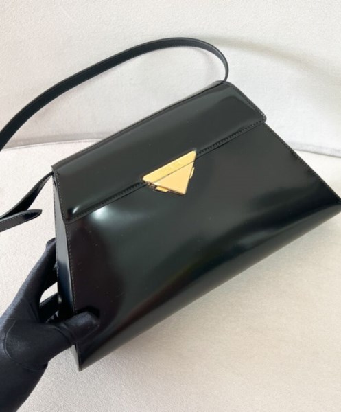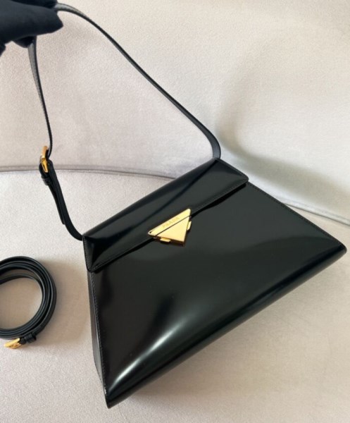 In an open dialogue between past and present, the Fall Winter 2023 collection writes the rules of new elegance. The rigid lines with a graphic quality reinterpret retro references, introducing innovative design solutions. The handbag made of brushed leather, an iconic material of the brand, is defined by a sleek, geometric silhouette that inspires sophisticated gestures. The triangle logo is transformed into a refined detail that embellishes and closes the accessory, consolidating the link between tradition and modernity.