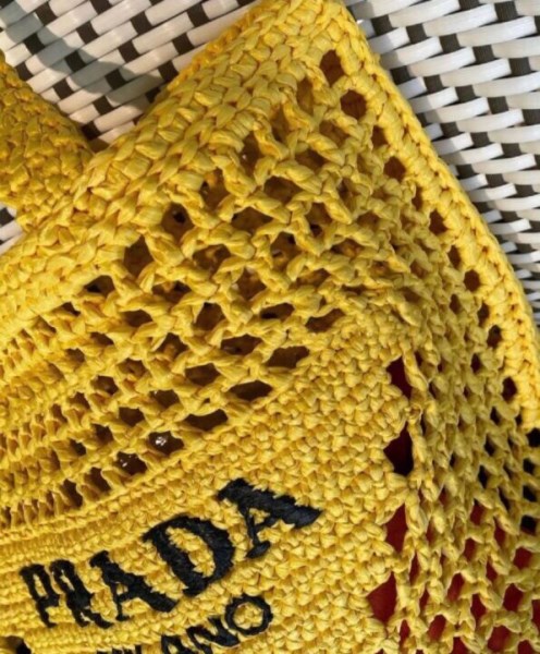 Prada Raffia Tote Bag 1BG393 Yellow
