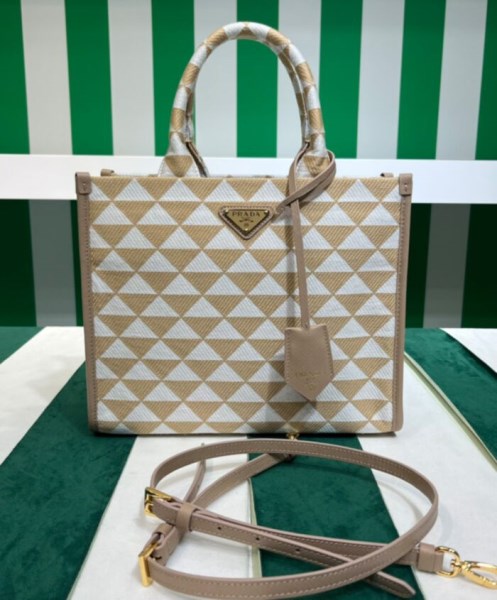 Be the first to review “Prada Small Prada Symbole Embroidered Fabric Handbag 1BA354 Cream”