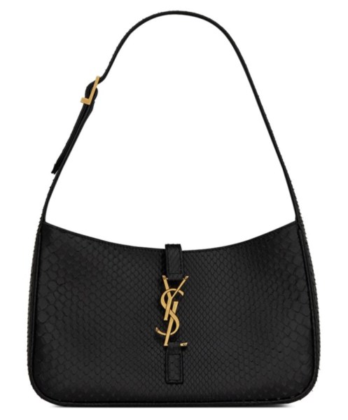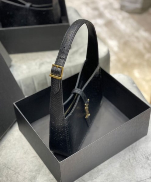 Saint laurent monogram hobo bag with an adjustable strap and tab closure with metal ysl hook.