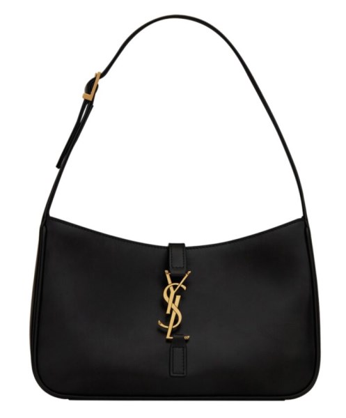 Saint laurent monogram hobo bag with an adjustable strap and tab closure with metal ysl hook.