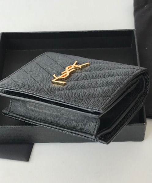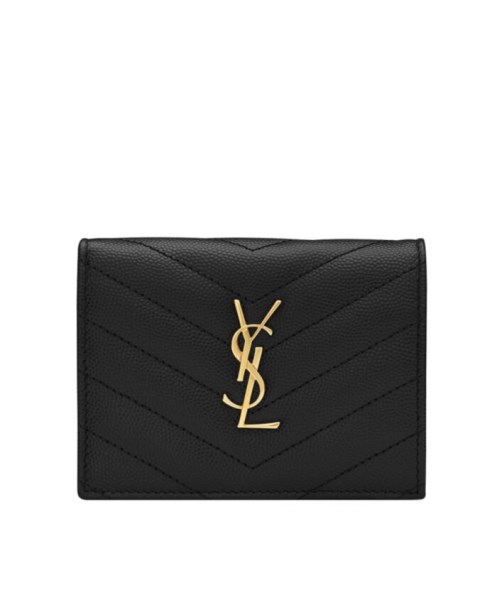 Product Name Saint Laurent Monogram Compact Tri Fold In Grain De Poudre Embossed Leather Black