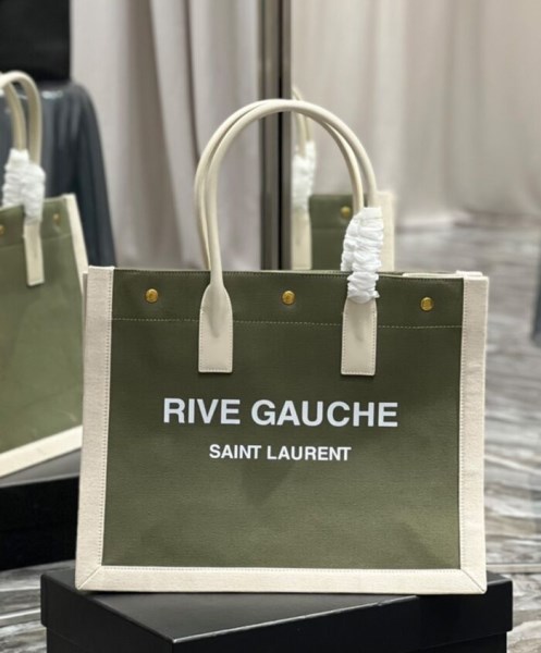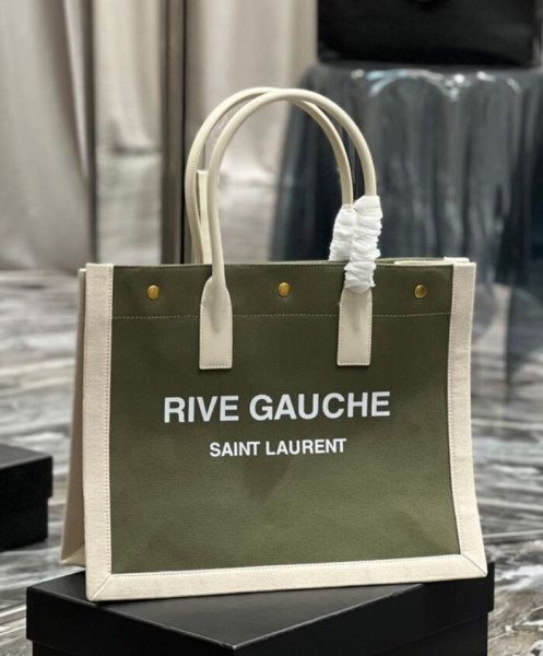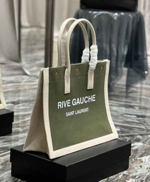 | Product Name | Saint Laurent Rive Gauche Small Tote Bag In Linen And Leather Green |