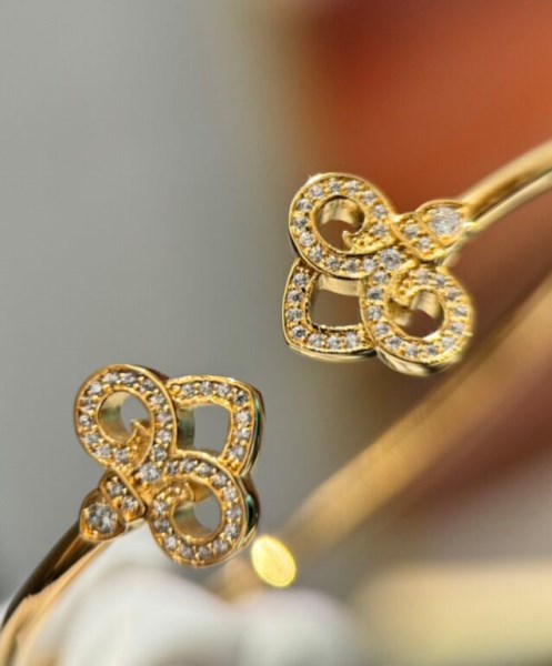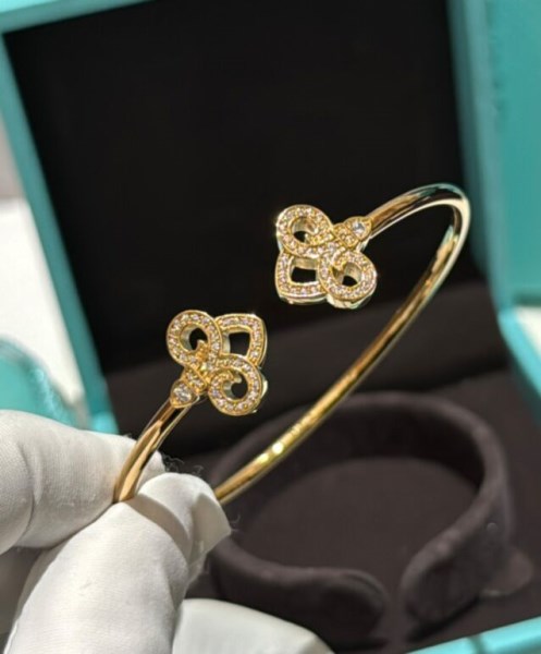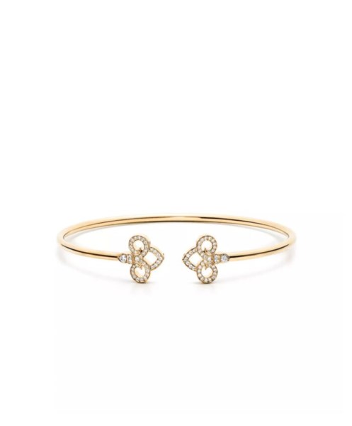 Feminine and delicate, the designs of the Tiffany Fleur de Lis collection offer a refined sense of graceful empowerment that speaks to quiet confidence. Dazzling diamonds adorn this bangle, making a striking statement.
