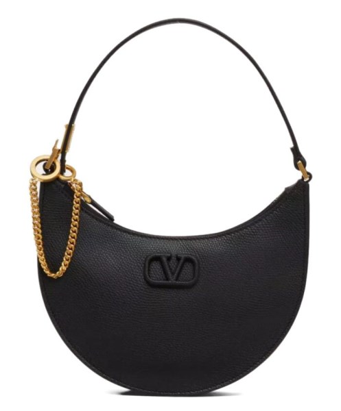 VLOGO SIGNATURE mini HOBO bag in shiny calfskin with adjustable chain shoulder strap for shoulder or hand carry