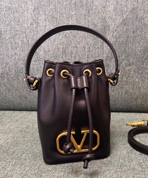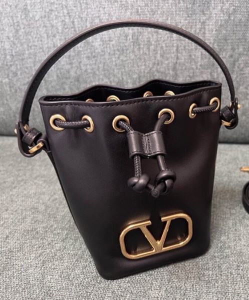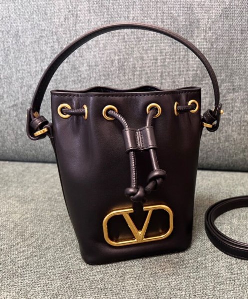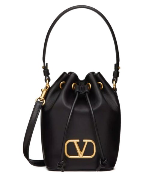 Valentino Garavani VLogo Signature mini bucket bag in Nappa leather. Equipped with a removable shoulder strap and handle, this mini bag can be worn as a crossbody/shoulder accessory or carried as a handbag.