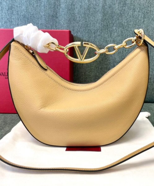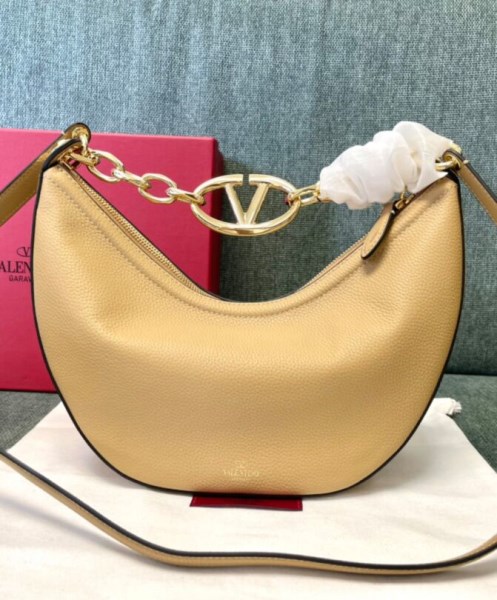 Be the first to review “Valentino Small Vlogo Moon Hobo Bag In Grainy Calfskin With Chain Apricot”
