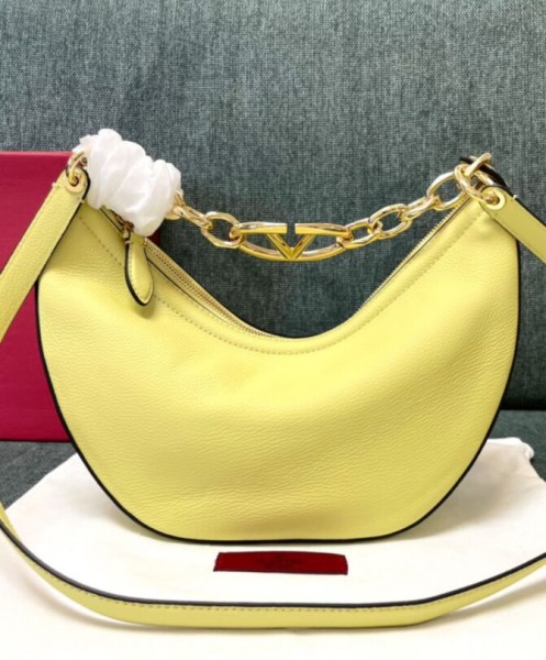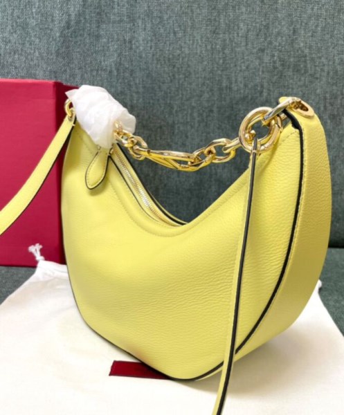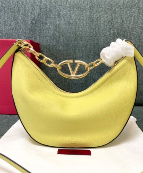 Be the first to review “Valentino Small Vlogo Moon Hobo Bag In Grainy Calfskin With Chain Yellow”