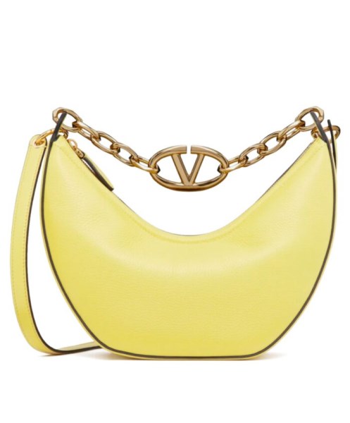 Valentino Small Vlogo Moon Hobo Bag In Grainy Calfskin With Chain Yellow