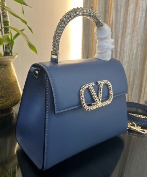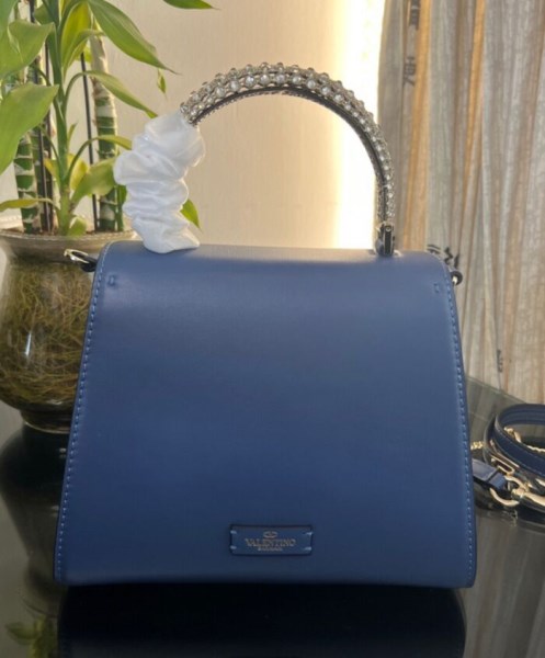 Be the first to review “Valentino Small Vsling Calfskin Handbag With Jewel Handle Blue”