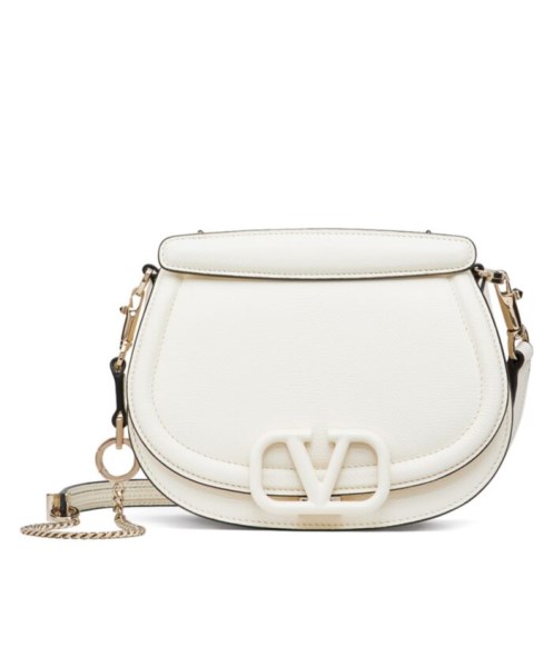 Valentino Garavani VSLING shoulder bag in grainy calfskin with tone-on-tone enamel Vlogo Signature closure. The bag can be worn on the shoulder/crossbody thanks to its extendable shoulder strap, and handheld thanks to its handle.