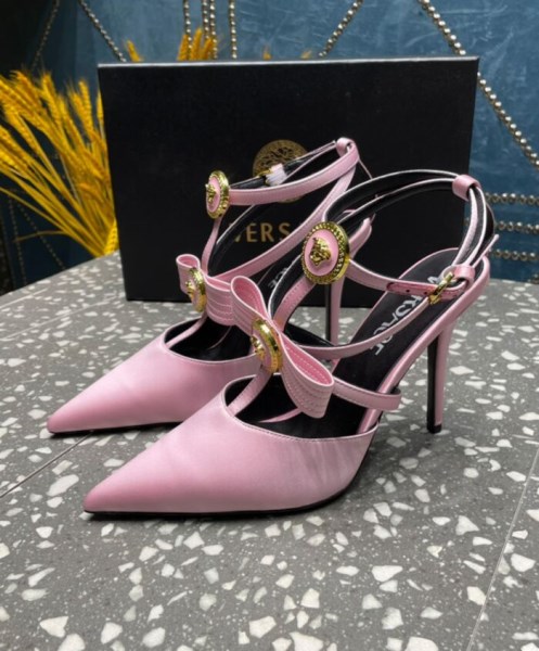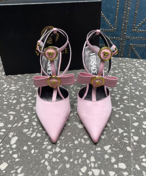 Be the first to review “Versace Women's Gianni Ribbon Cage Satin Pumps Light Pink”