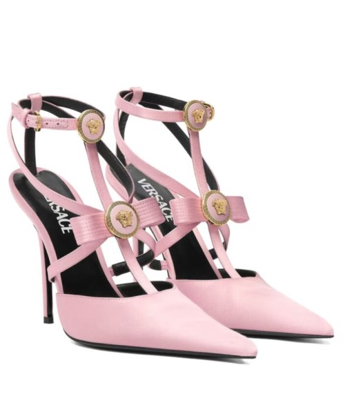 Versace Women's Gianni Ribbon Cage Satin Pumps Light Pink